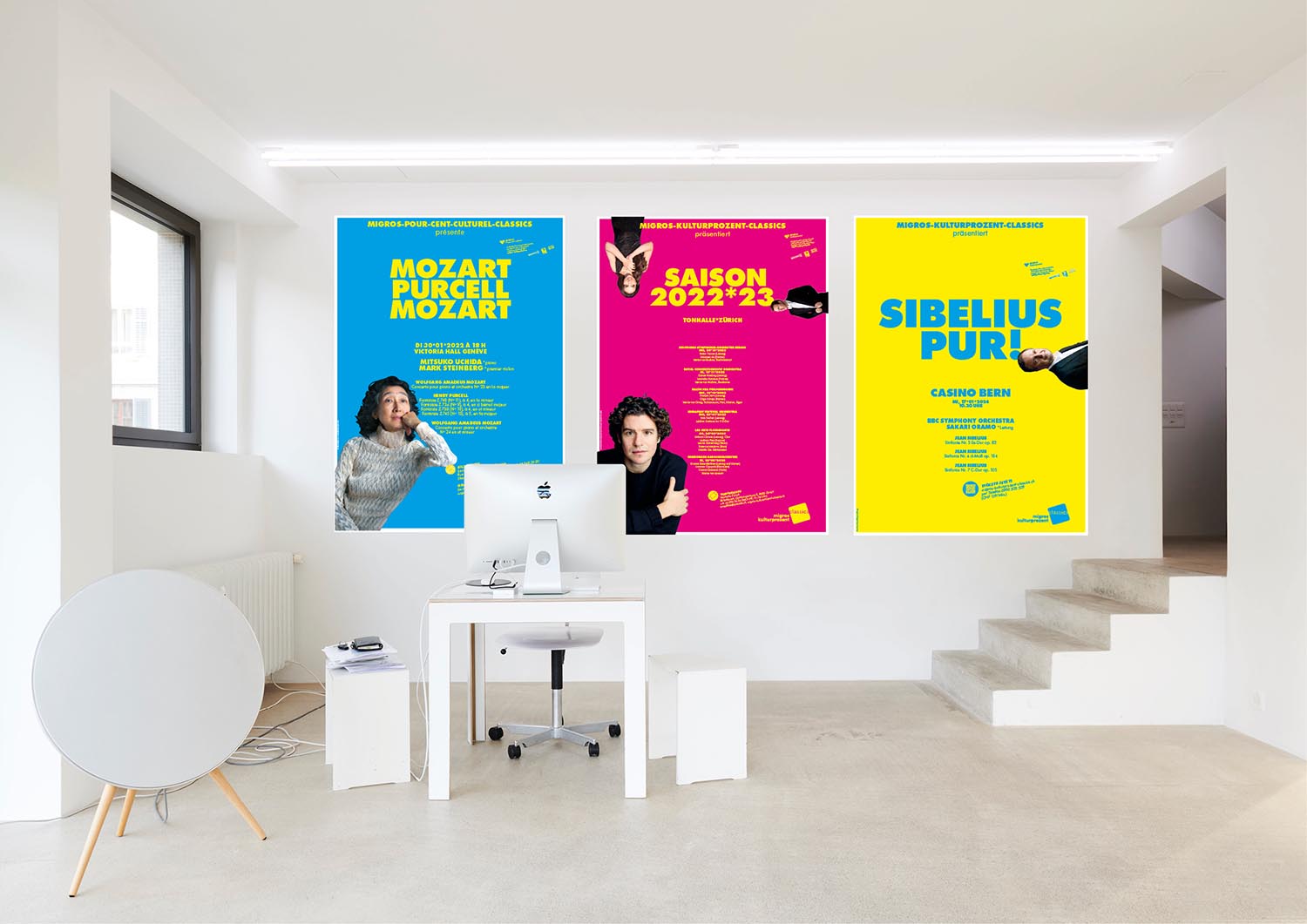 Migros-Kulturprozent-Classics präsentiert — von Anne-Sophie Mutter über Regula Mühlemann bis zum Baltic Sea Orchestra. Top Niveau zu fairem Preis ist das Konzept, beste Konzerte mit renommiertesten Musiker:innen sind das Resultat. Sonja Studer verantwortet den Gesamtauftritt: plakativ und selbstbewusst in komplementärer Farbigkeit. Hier gehts zum Konzertprogramm …